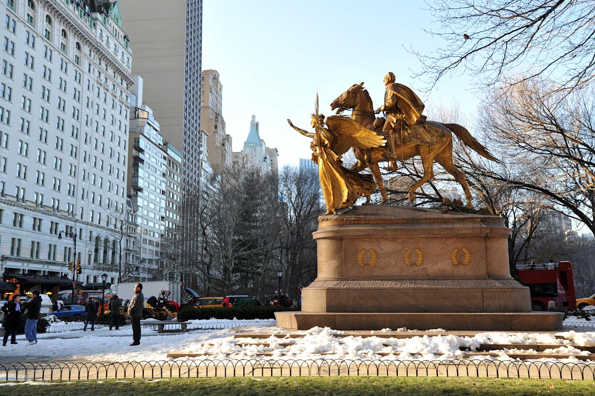 One of the main entrances to Central Park, Grand Army Plaza is located at the park's southeast corner where Fifth Avenue meets 59th Street and serves as both a gathering place for visitors as well as one of the City's most dramatic public spaces. Named in honor of the Grand Army of the Potomac from the Civil War, the plaza was dedicated in 1916 with a gilded gold equestrian statue of Union General William Tecumseh Sherman. The southern half of the plaza fronts the famed Plaza Hotel with a Renaissance-style fountain by sculptor Karl Bitter featuring the goddess Pomona. With these two classical statues framing one of the main gateways to Central Park, Grand Army Plaza is a popular spot for photos.