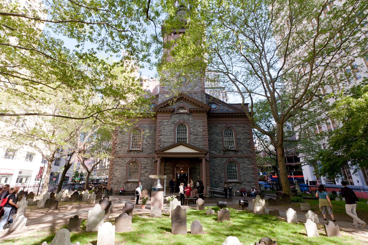 Opened in 1766, St. Paul’s Chapel is Manhattan's oldest public building in continuous use, and is known for its historic cemetery. George Washington prayed in the chapel following his inauguration as the President of the United States. The chapel hosts a variety of events, including concerts, Compline by Candlelight every Sunday at 8pm, and more. The chapel is open to the public 8:30am-6pm daily and the churchyard is open 8:30am-4pm daily.