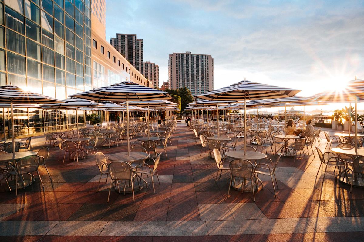 The Waterfront at Brookfield Place offers spectacular views of the Hudson River, with the Brookfield Place complex as a backdrop. The riverside promenade offers outdoor seating, restaurants, and sailing at North Cove Marina, home to six seasonal boat tour operators and North Cove Sailing School.