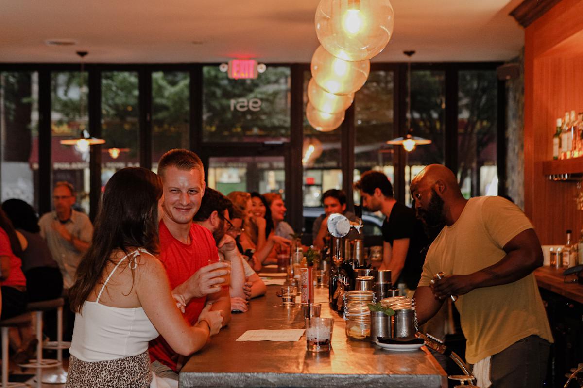 Die Upper West Side (in diesem Fall technisch gesehen Manhattan Valley) ist eher mit Kultur, Wissenschaft und gemütlichen Braunsteinen als mit dem Nachtleben bekannt – aber die Eröffnung von Nobody Told Me bringt es noch eine weitere unterhaltsame Option nach Einbruch der Dunkelheit. Die Cocktailbar des bekannten Küchenchefs Nick Pfannerstill belebt einen ruhigen, meist wohnlichen Teil der Amsterdam Avenue. Im Inneren finden Sie ein Neonschild und eine Blumentapete, die Sie davon überzeugen könnten, in eine Bar weit weiter in der Innenstadt einzutreten. Getränke sind in die Kategorien Kinda Classic und Kinda Not unterteilt. Beispiele hierfür sind ein Pfeffergelee julep (Bourbon, Pfefferlikör, Minze und Pfeffergelee) auf dem ersten und der erfinderische Assemble the Empire (Italicus, Sherry, Brombeeren, Orgeat) auf dem zweiten. Achten Sie auch auf die Speisekarte. Zu den Highlights gehören gemeinsam nutzbare Garnelenrollen, Trüffel-Queso und ein knuspriges, würziges Hähnchen-Sandwich, das Sie nicht teilen möchten.