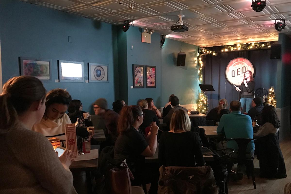 Der Veteranenproduzent Kambri Crews (Comix, Ochi's Lounge, 92Y Tribeca) schenkte ihr Herz in Q.E.D., wo Sie alles finden, von Stand-up-Comedy über Gedichtslammen, politische Debatten und Blumenarrangements – und einen monatlichen Katberet mit Katzenmotiv. Jeden Monat werden mehr als 100 Shows und Kurse angeboten. Die frischen Talente – plus eine bescheidene Abdeckung und ein Minimum an Getränken – machen diesen Astoria Treffpunkt zu einer erschwinglichen und willkommenen Alternative zu den Manhattan Clubs.