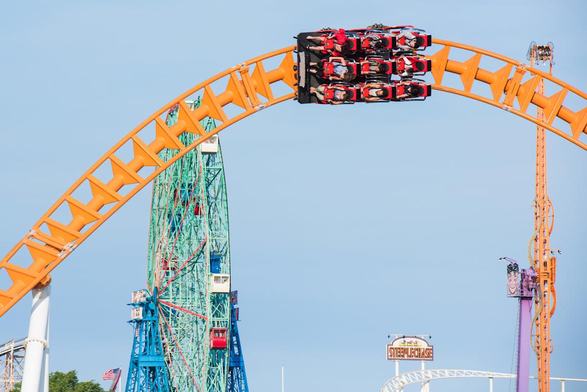 La primera montaña rusa construida a medida en la isla Coney desde el ciclón en 1927, la Thunderbolt de 30 metros de altura, con 600 metros de pista de acero, un bucle de 30 metros, un sacacorchos y un rollo de gravedad cero, es una versión moderna de la clásica montaña rusa de la isla Coney del mismo nombre. Ocupa el mismo trozo de césped junto al Boardwalk que el primer Thunderbolt, la montaña rusa de madera retorcida e inmortalizada en la película Annie Hall. El original se cerró en 1982, después de casi 60 años de funcionamiento, y se demolió en 2000.