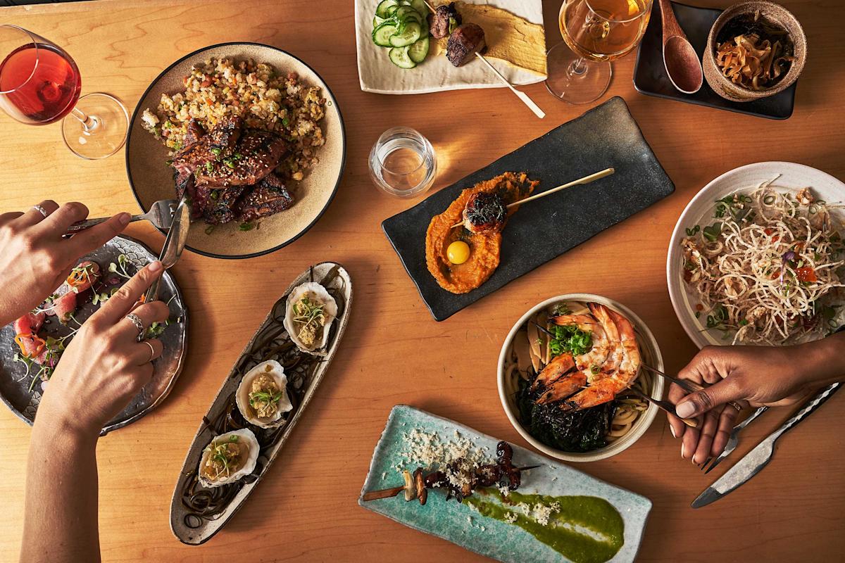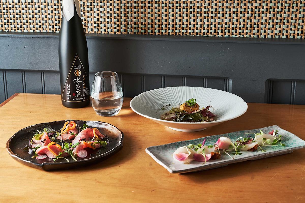Būmu is a chic downtown hangout modeled on a Japanese izakaya. Joaquin Baca, formerly of Brooklyn Star and Momofuku, and his team of chefs work in the open kitchen artfully plating raw scallops with bacon jam and hamachi layered with pickled watermelon and avocado. There are cooked dishes too, such as wok-fried pea leaves with black garlic and skillet-cooked okonomiyaki topped with smoked tobiko, Benton’s bacon and Duke’s mayonnaise. The drinks menu includes thoughtful cocktails, natural wines and pages of sake.