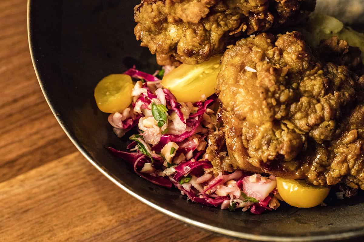 Tapestry is not an Indian restaurant—even though the chef, Suvir Saran, is from New Delhi, has written Indian cookbooks and earned a Michelin star at Dévi, a highly acclaimed Indian restaurant in the City (now closed). Reflecting India’s history of trade and colonization, the menu at this white-hued, West Village bistro is cross-cultural. Sea bass ceviche with avocado, cilantro, lime and chiles speaks of Mexico while textured rabbit terrine with pistachios and pernod weaves in French accents. Fried chicken coated in masala spices and served with peanut slaw and tomato chutney spells comfort food in any language. Cocktails are particularly smashing. For example, the “Something Wicked” is an invigorating, smoky blend of mezcal, habanero sangrita, pineapple and lime.
