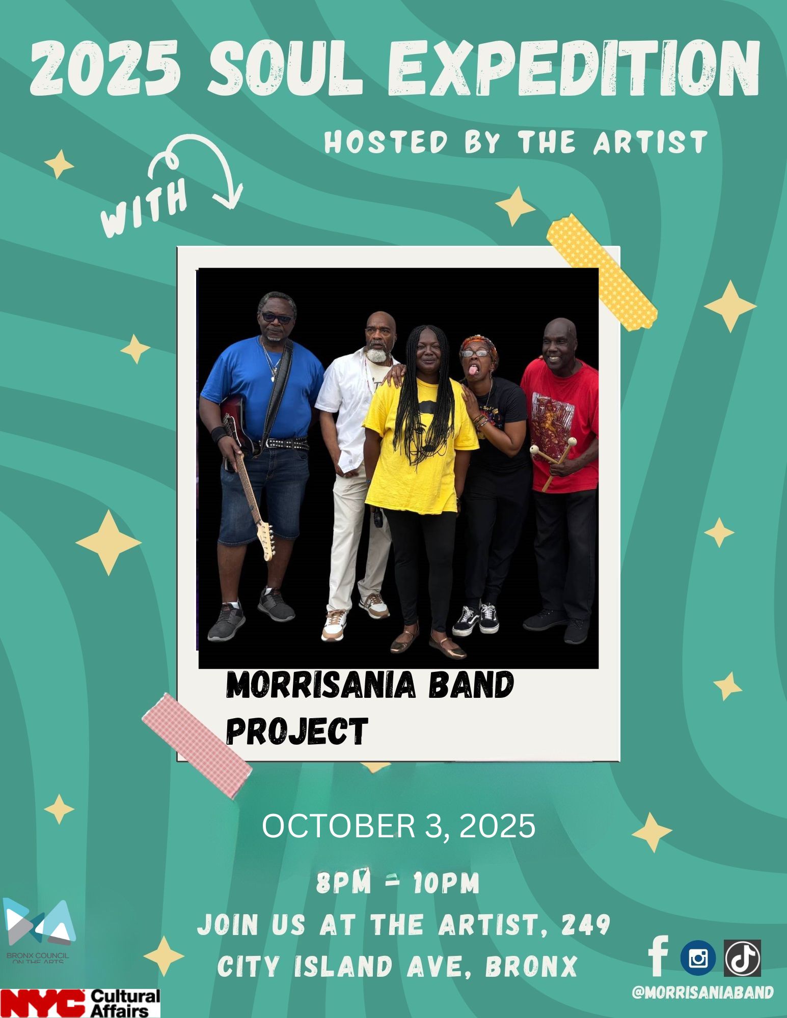 Fresh off their New Orleans residency, the Bronx's Morrisania Band Project—three-time “Best of the Bronx” winners—returns to light up the stage at Starving Artist on City Island. Known for bringing energy to the NYC Marathon and Yankees Opening Day, the band takes its signature soul sound to an intimate Bronx stage for one night only.