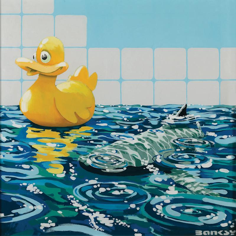 Banksy: Building Castles in the Sky is an exhibition that collects more than 100 original works and objects by the British artist known as Banksy, from the paintings of the very first phase of his career up through recent works such as from his “Dismaland” project. While the curators’ art selection protocol required that each artwork be certified by Pest Control Office Ltd. (Banksy’s “legal guardian”) and accompanied by fully documented provenance, Banksy is not involved in this exhibition, and has not provided any endorsements or support nor artworks for this project.