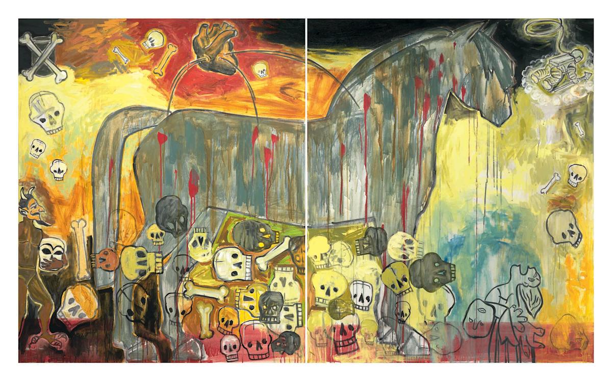 Jaune Quick-to-See Smith, War Horse in Babylon, 2005. Forge Project Collection, traditional lands of the Muh-he-con-ne-ok. Courtesy, the artist and Garth Greenan Gallery, New York