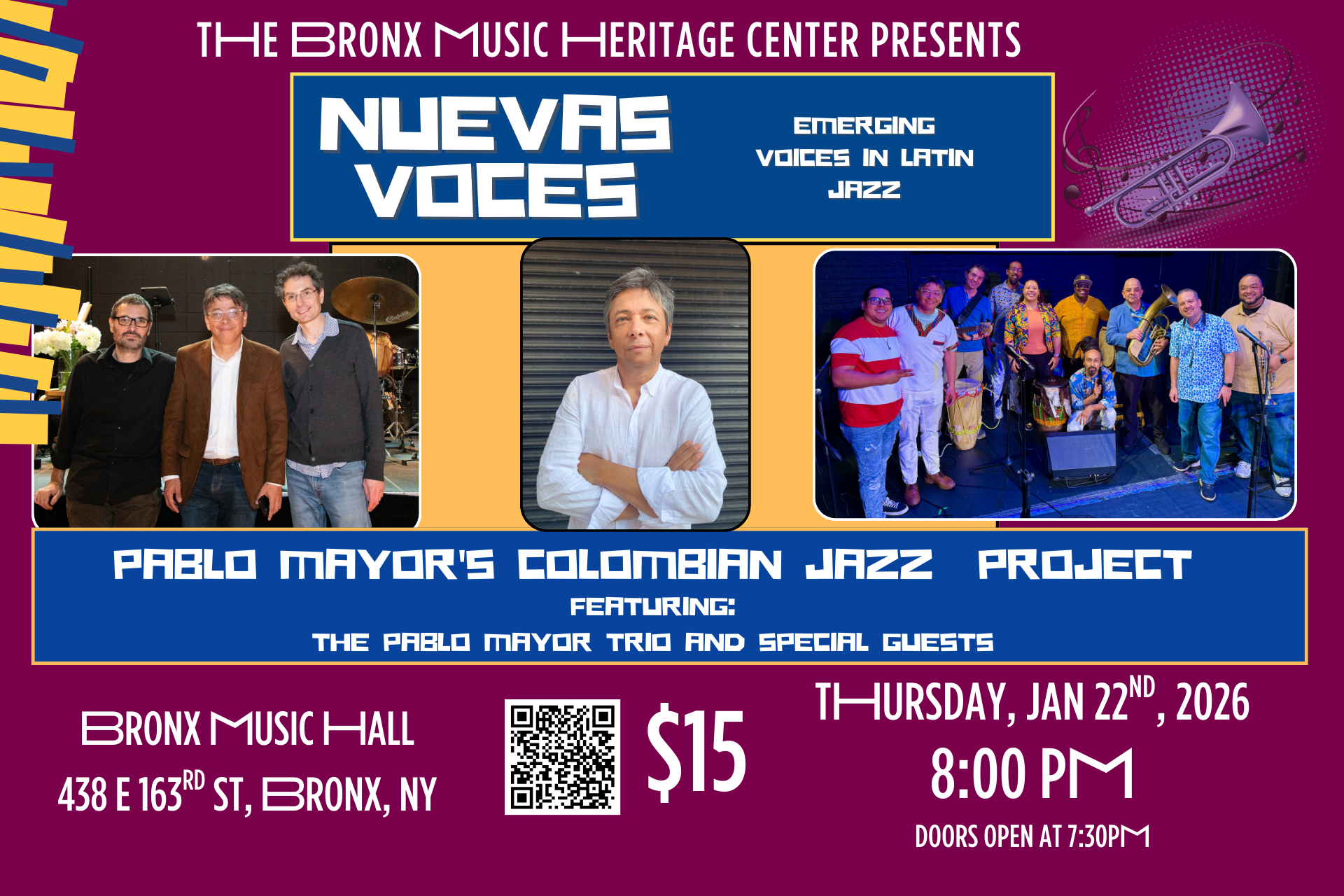Kick off the new year at Bronx Music Hall with Nuevas Voces, led by Grammy-nominated composer, arranger and producer Pablo Mayor. Featuring the Pablo Mayor Trio and special guests, this performance blends Colombian rhythms with contemporary jazz, showcasing a distinctive sound that is rooted in tradition while boldly shaping the future of Latin jazz. Don’t miss an evening celebrating innovation, collaboration and new musical voices.