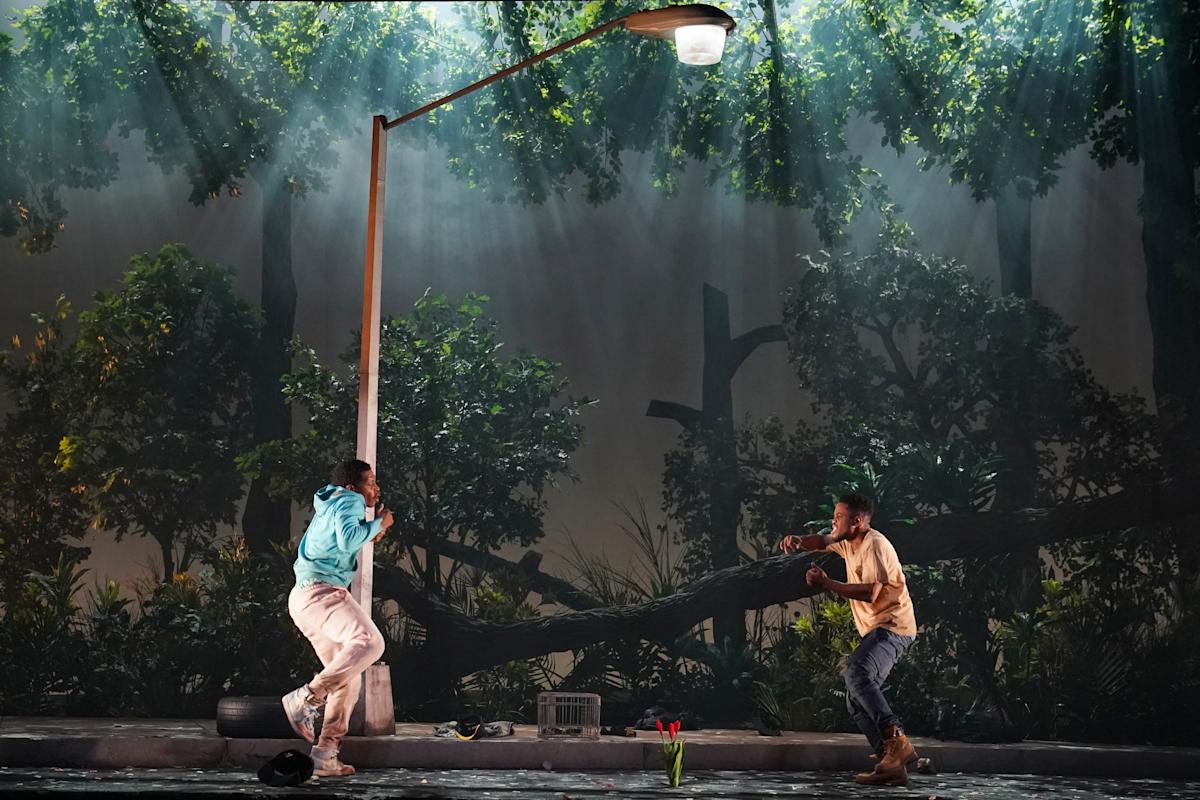 Antoinette Chinonye Nwandu’s award-winning play contains elements of Waiting for Godot and Exodus, with Moses and Kitch talking of their visions for a promised land until a stranger interrupts their conversation. The production, which marks the Broadway debut of Nwandu and director Danya Taymor, reunites the cast from its 2018 Lincoln Center Theater run: Jon Michael Hill, Namir Smallwood and Tony Award winner Gabriel Ebert.