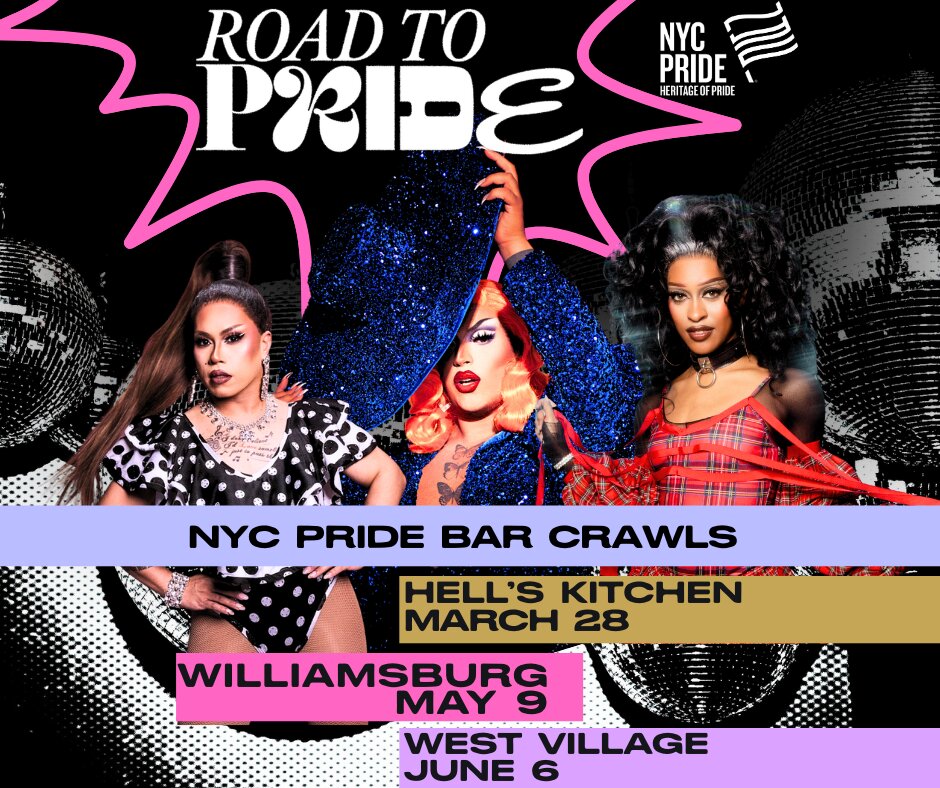 NYC Pride's "Road to Pride" bar crawl series explores different LGBTQIA+ hot spots. May's event is a disco-themed crawl through Williamsburg.