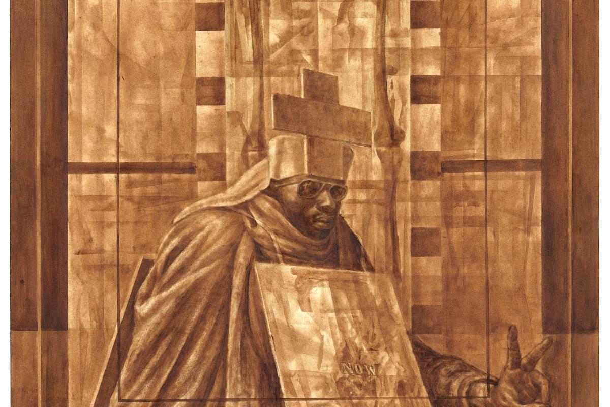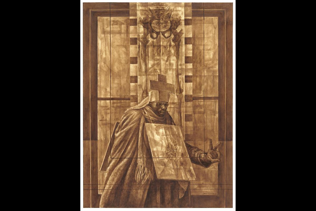 Charles White. Black Pope (Sandwich Board Man). 1973. Oil wash on board. 60 × 43 7/8″ (152.4 × 111.4 cm) The Museum of Modern Art, New York. Richard S. Zeisler Bequest (by exchange), The Friends of Education of The Museum of Modern