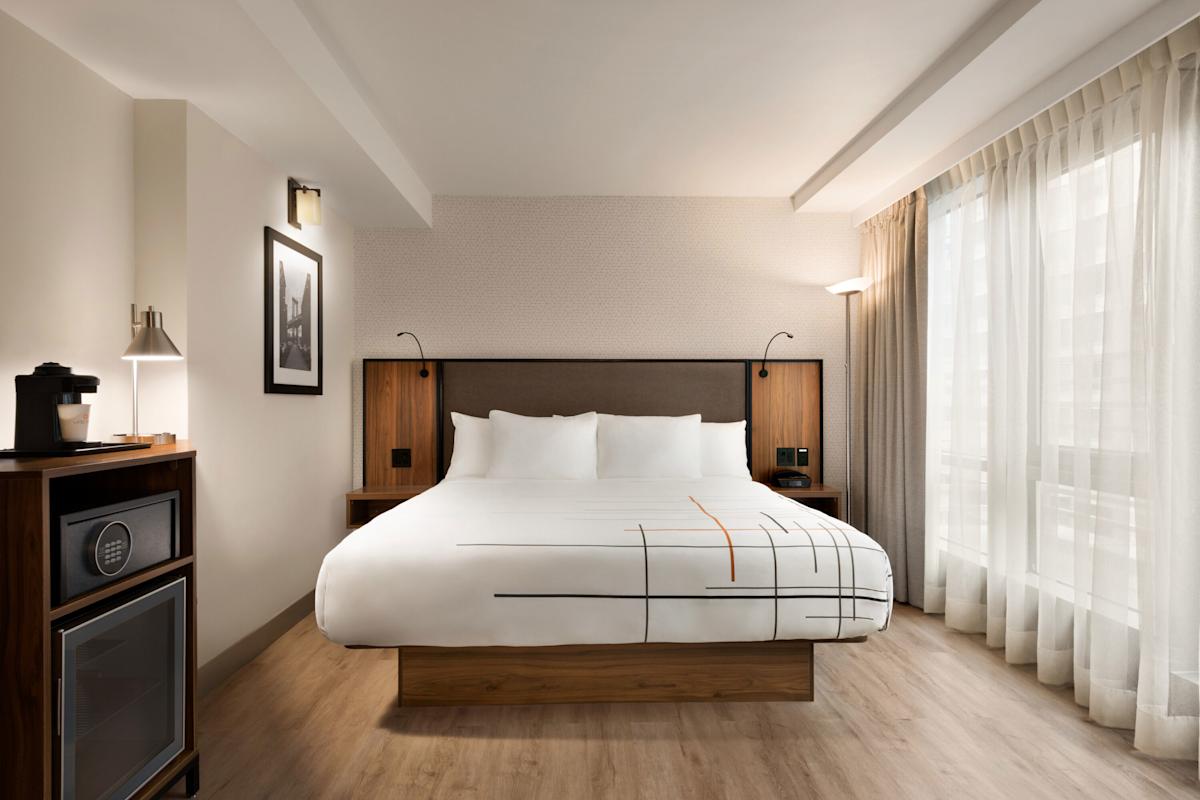 La Quinta by Wyndham Times Square South is a hotel located near Times Square that offers complimentary essentials including continental breakfast, WiFi in all areas, and coffee and tea all day. The hotel is also pet-friendly.