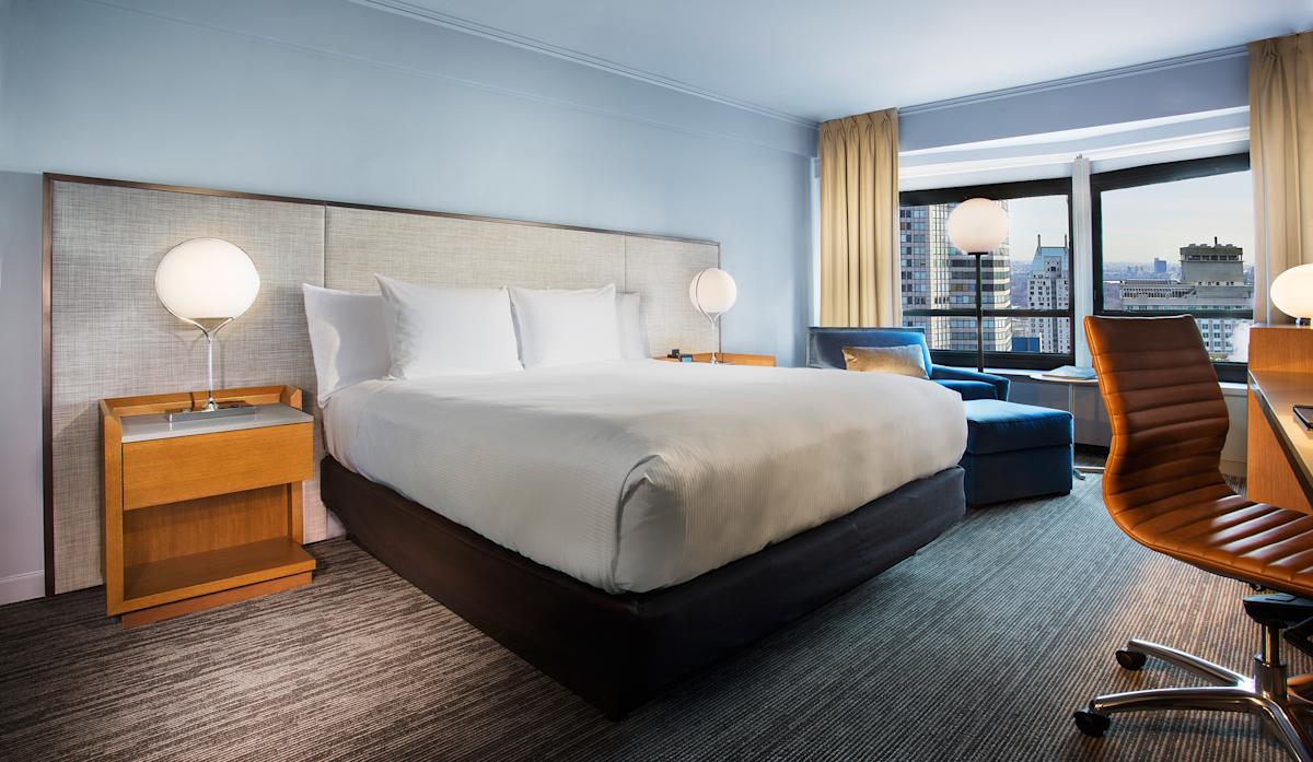 This 1,931-room sophisticated international hotel is located in the core of Midtown Manhattan on Sixth Avenue between West 53rd and West 54th streets, within a short walking distance of Central Park, Rockefeller Center, Radio City Music Hall, the Museum of Modern Art and Carnegie Hall, and it is just a few blocks away from Times Square, Broadway theaters and the renowned Fifth Avenue shopping district. The hotel has a contemporary look throughout the lobby, restaurant, bars and lounges, fitness center and spacious guestrooms and suites.