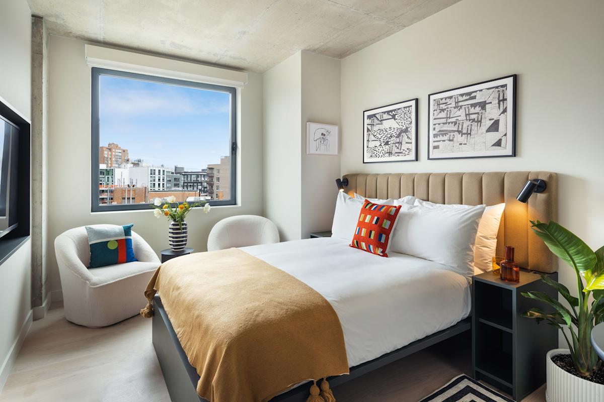 Located in a quiet part of Williamsburg but mere steps away from all the neighborhood has to offer, Penny offers a residential feel and an artful spirit. Guest rooms feature kitchenettes, pour-over coffee systems, and a digital minibar with 24/7 delivery. The hotel is filled with art from LAND Gallery and Pure Vision Arts, made by local artists with developmental disabilities.