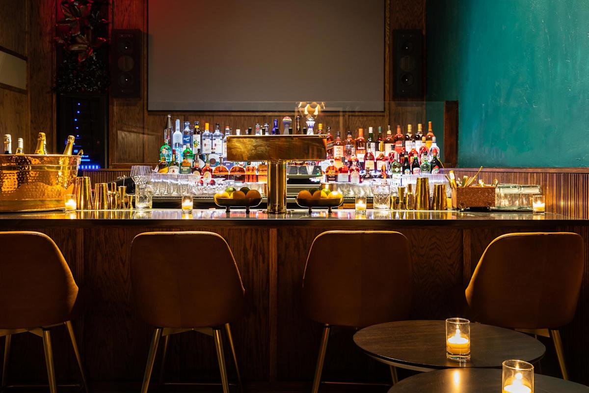 For their first venture together, Jesse and Eric Jacobs, brothers and alums of various Gerber Group bars in NYC, combined two nightlife concepts: hidden cocktail lounge and sports bar. The result is J. Bespoke, a sophisticated space for sports fans to watch major events without the elbow bumping and plastic-cup beer drinking of traditional sports bars. Guests enter J. Bespoke through a tall brass door at the back of Devoción coffee shop in Nomad and are escorted into the wood-paneled lounge. When games aren’t on, the bar’s flat-screen TVs display abstract art. At all times, the bars serves classic cocktails with twists, like a “Tegroni” that replaces gin with tequila, or a take on the espresso martini made with nitro cold brew from Devoción.