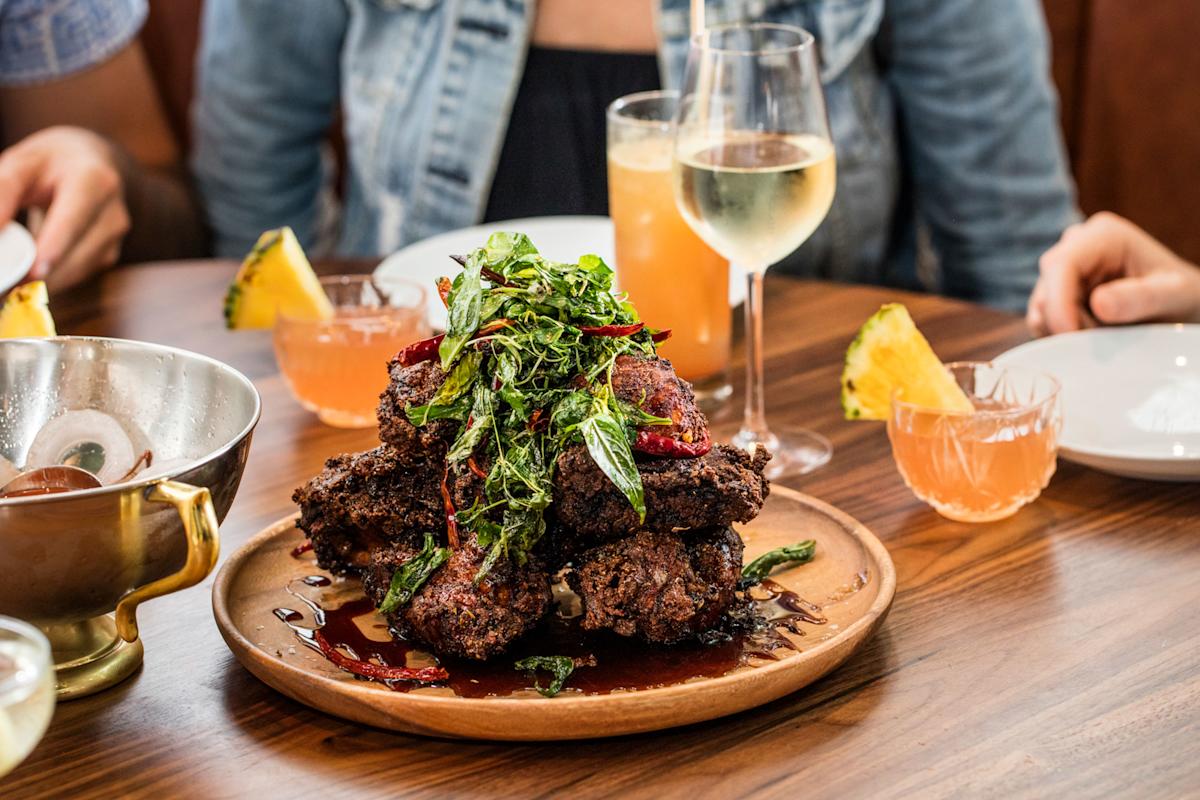 Yes, this bar does serve its eponymous cocktail, the Jungle Bird. Its version of the 1970s invention is made with rum, campari, Contratto Aperitif and lime; garnished with a healthy chunk of pineapple; and available on tap or as a group-friendly punch bowl. Additional offerings include drinks like the No Other Love (gin, elderflower, rose water, aquafaba, lemon) and a menu of South Asian–inspired snacks, such as a Thai beef jerky pickle board. Like its signature drink, the bar’s style is retro, colorful and a little tropical. A stool at the bottle-green bar is an excellent place to embrace summertime (or find summery vibes even off-season).