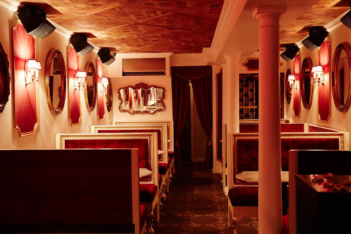 Inspired by France’s well-known queen Marie Antoinette, hidden craft cocktail bar Le Boudoir takes drink and decor inspiration from this infamously luxurious lady. The space features cushy red velvet banquettes, gilded mirrors and antique sconces in a subterranean brick-lined, cellar. Enter through a hidden bookshelf door inside French bistro Chez Moi at 135 Atlantic Avenue near Henry Street. Sip on novelty cocktails like Guillotine (scotch, mezcal, banane, and honey) or Axel von Fersen (applejack, bourbon, sesame, curry, black caraway), and nosh on a selection of pâtés, frites and macarons.
