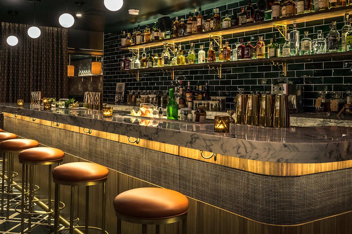 One speakeasy-style bar wasn’t enough for David Oz, proprietor of Bathtub Gin in Chelsea and now the neighboring 18th Room—named for the amendment establishing Prohibition. To get inside, you’ll have to pass through a decoy coffee supply store that conceals the art-deco-inspired bar. Take a seat at one of the velvet banquettes or at the marble bar to enjoy a custom cocktail made with your flavor and spirit preferences in mind. A set menu of creative seasonal cocktails is also available: try the Nailed It! with whiskey, carrot whiskey liqueur, house-crafted chocolate fudge and smoked salt, or the Coffee, Stop, made with vodka, coffee, wattle seed liqueur and espresso.