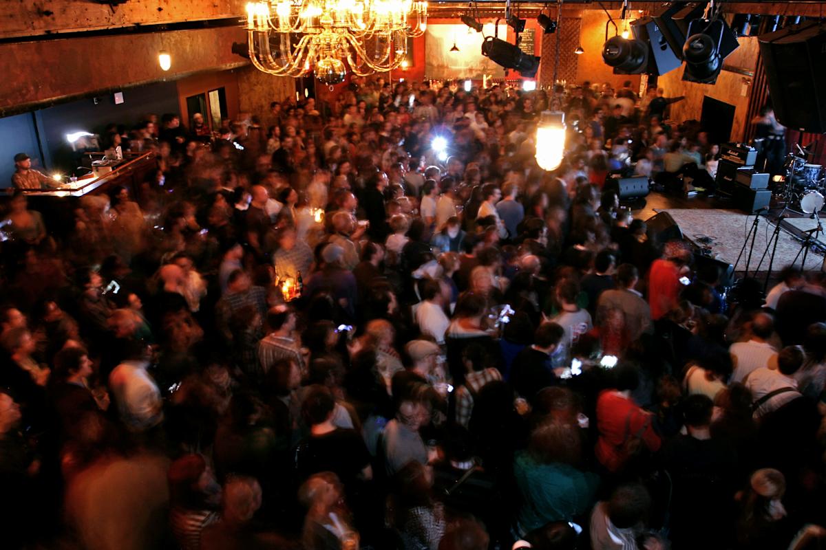 This bar and concert venue brings indie acts to a redecorated 1920s warehouse space, complete with chandeliers, lots of dark wood trimmings and an old-fashioned stage with red velvet curtains.