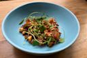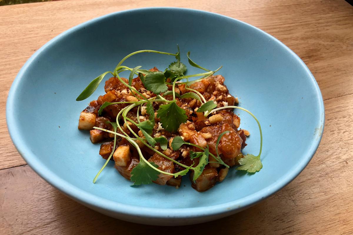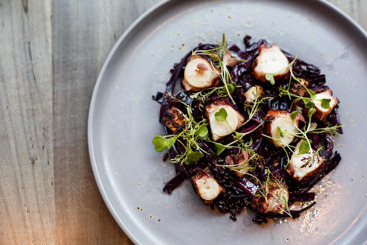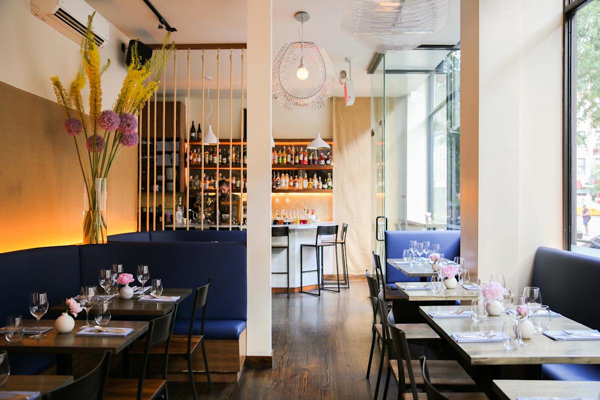 The intimate, completely pescatarian restaurant Gloria looks like a glass-walled jewel box: tasteful and chic, it's perched on a quiet street in Hell’s Kitchen, featuring royal blue leather booths, striking geometric lucite light pendants and floor-to-ceiling windows. Vegetable-forward dishes are locally sourced from the Eastern Seaboard, and the fish is ultra-fresh and creatively presented. Mexico-inspired tilefish tartare al Pastor comes with pineapple and corn, and the lovely Maine Jonah crab is draped with bouillabaisse sabayon. Sommelier Phil Johnson, previously of natural wine mecca Contra, assembled the all-natural wine list.