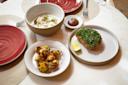 abcV is a seasonally driven plant-based eatery that serves boundary-defying vegan and vegetarian food in a warm and verdant enclave with views of the Brooklyn Bridge.