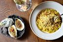 Shake off the day at Anton’s, a cozy European-influenced bistro radiating with good cheer. Chef-partner Nick Anderer (ex-Marta, Maialino) tinkers with French and Italian classics, such as a silky omelette shrouded by a green salad and hand-cut angel hair pasta bathed in lemony-buttery francese sauce that crunches with bread crumbs. His West Village haven is also celebrated for its juicy roasted chicken. Grab a barstool if you just want a snack; try the “Hudson rarebit,” toast made with tangy melted cheese and béchamel.