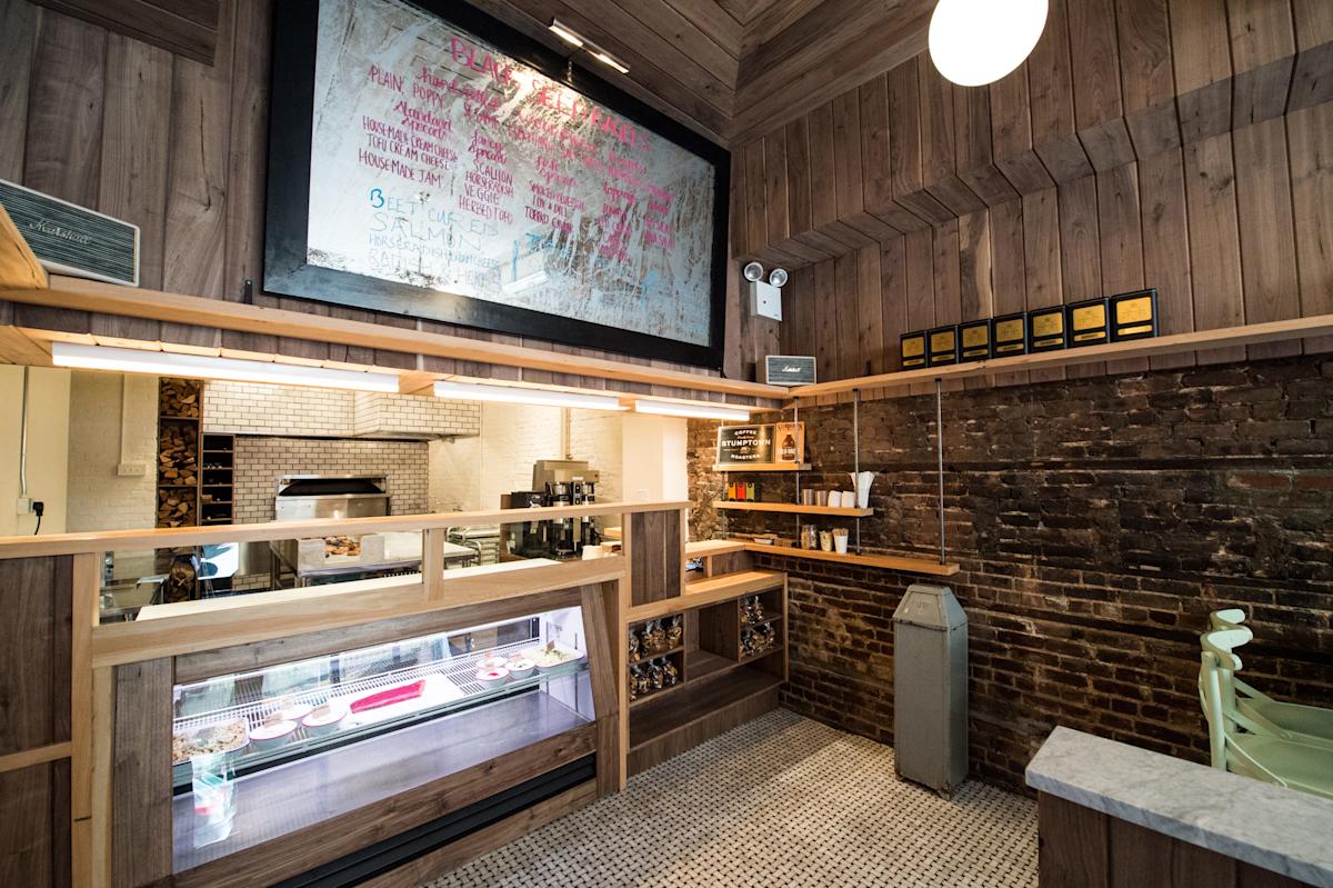 Mile End's Noah Bernamoff teamed up with the Smile's Matt Kliegman to open this bakery-café specializing in old-school, hand-rolled bagels baked in a brick-lined wood-burning oven. The bagels are fairly small and dense, the seeding heavy. And though Bernamoff is from Montreal, they're not sweet, as is the style there. Consider Black Seed the revival of the great New York City bagel that is not factory made. A chalkboard menu details the sandwich variations, the most classic being smoked salmon, cream cheese, red onion, tomato and capers. Everything is homemade, from the cream cheese to the jam to the smoked whitefish salad. Ordering is done at the counter, and there are a few small tables in the wood-paneled space if you'd rather not take your nosh and Stumptown coffee on the road.