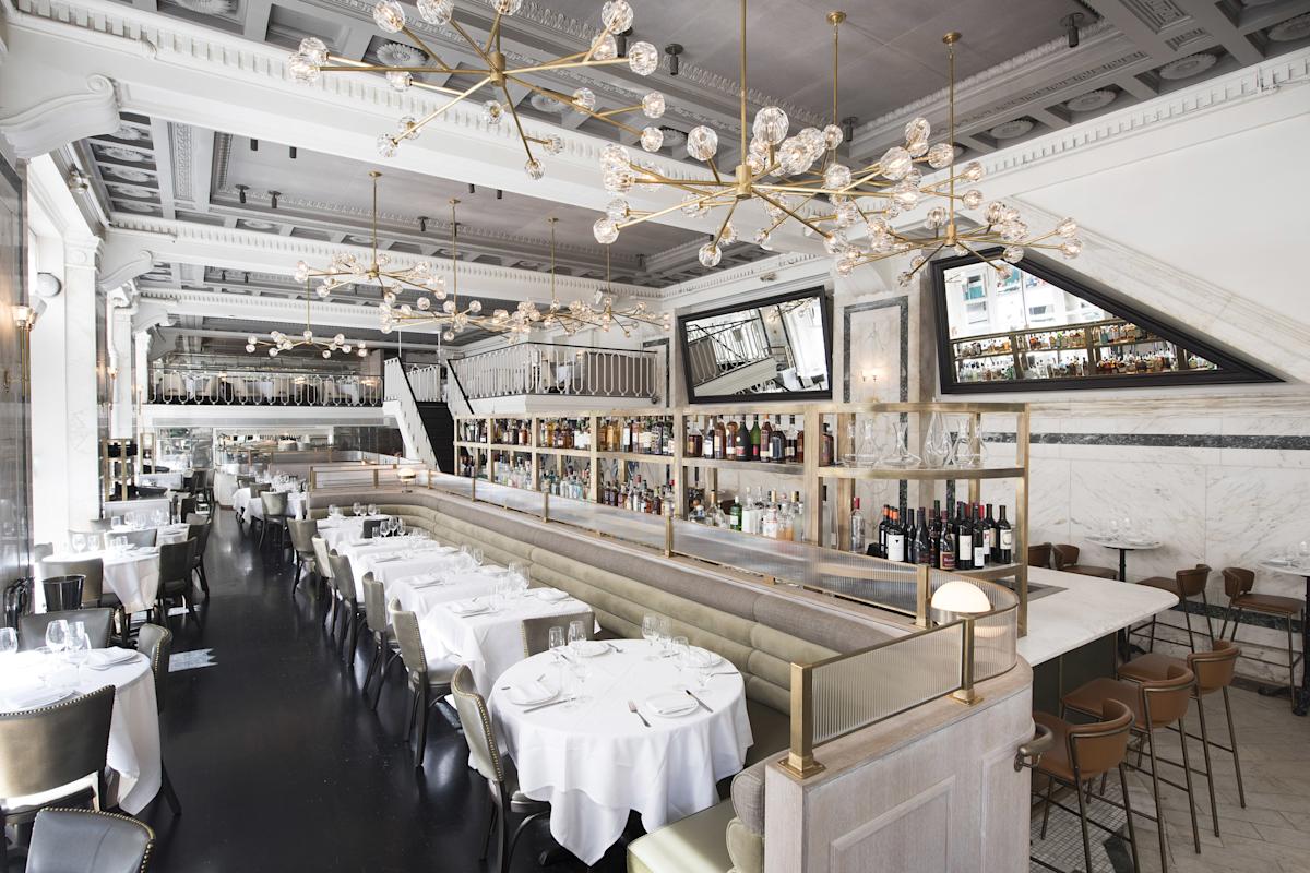 As the name suggests, fish is the name of the game here, in a grand, high-ceilinged space that formerly housed a bank. The preparations are decidedly unfussy, giving the fish itself room to shine: A long list of sushi; blackened swordfish with a hash of sweet potato and crab and sea bass with wasabi vinaigrette are among the highlights (steak and chicken dishes are available for the seafood shy). The bar is a bubbling pick-up scene among youngish professionals.