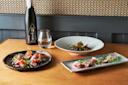 Būmu is a chic downtown hangout modeled on a Japanese izakaya. Joaquin Baca, formerly of Brooklyn Star and Momofuku, and his team of chefs work in the open kitchen artfully plating raw scallops with bacon jam and hamachi layered with pickled watermelon and avocado. There are cooked dishes too, such as wok-fried pea leaves with black garlic and skillet-cooked okonomiyaki topped with smoked tobiko, Benton’s bacon and Duke’s mayonnaise. The drinks menu includes thoughtful cocktails, natural wines and pages of sake.