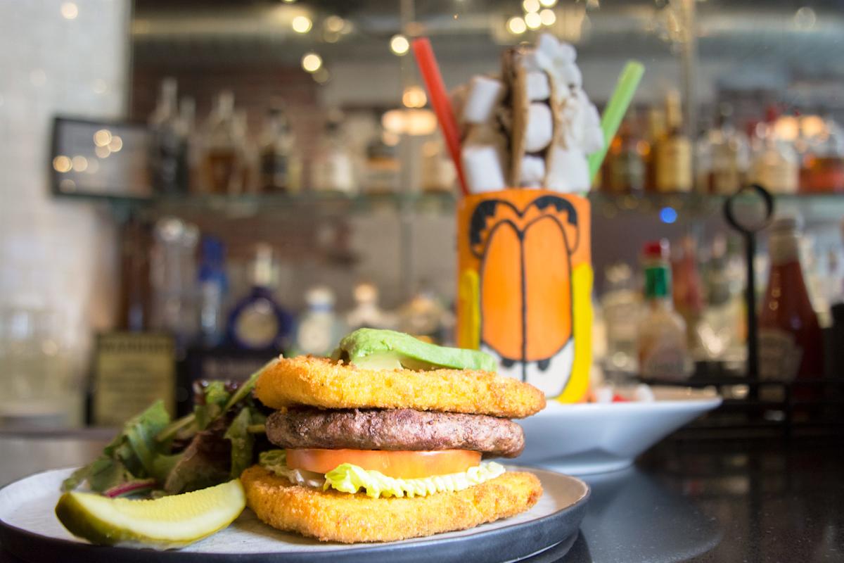 This sandwich, salad and burger bar in Chelsea puts an inventive twist on classic sandwiches, such as chicken parmigiana on pretzel bread, cinnamon fried chicken with teriyaki hoisin served on steamed bao buns or a burger with applewood smoked bacon and a fried egg served on a glazed doughnut. Also, don’t miss out on their milkshakes: These larger-than-life concoctions are piled high with whipped cream, tons of toppings and syrups, and served in glasses covered in colorful buttercream frosting.