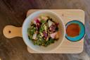 Buunni Inwood is an independent neighborhood coffee shop that brews small-batch roasted Ethiopian coffee beans. Many of the coffees are certified fair trade and organic, while others are sourced from small farms that are committed to responsible practices. Buunni also offers a menu of Ethiopian vegetarian and vegan plates, featuring spicy red lentils, chickpeas and other dips served with injera (Ethiopian flatbread), plus sandwiches and wraps.