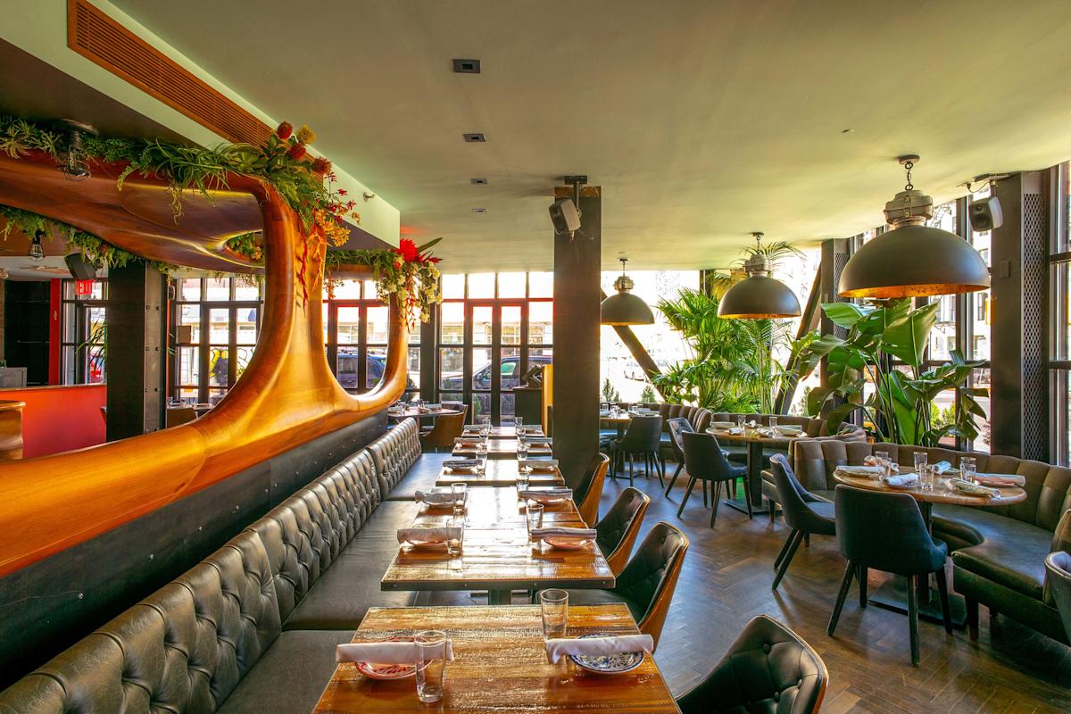 Dozens of tequilas, tart margaritas by the pitcher and exceptional Mexican food from Ivy Stark (formerly at Dos Caminos) make Casa Bocado a hot spot. The corner space on Broome and Bowery is lined with windows and cushy banquettes; a cheerful bar anchors the room. Start with chunky guacamole or luscious queso fundido stocked with chorizo, and don’t miss scooping up toasted pumpkin seed butter spiked with habaneros (baby vegetables and chips do the work). There’s also a tempting selection of well-executed ceviches, tacos and enchiladas.