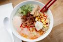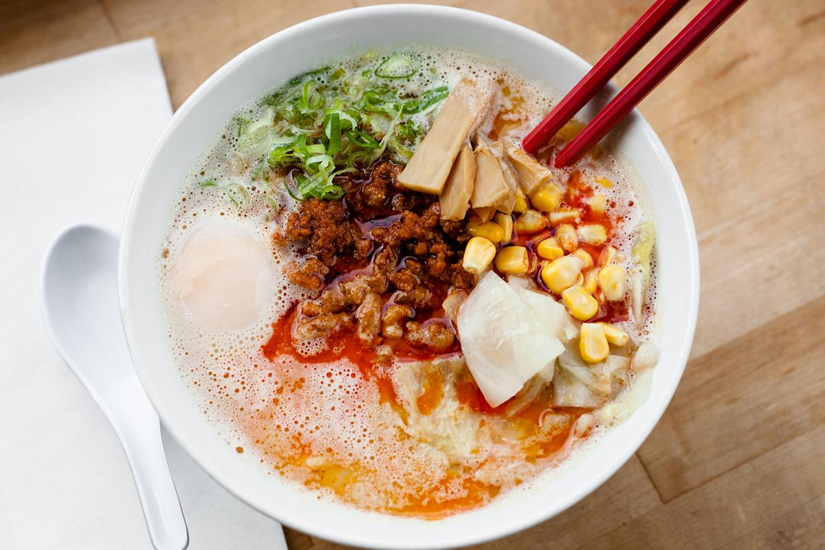 At this buzzy Brooklyn ramen joint—reminiscent of a less sceney Momofuku with its natural-wood aesthetic, hipster waitstaff and ’90s hip-hop soundtrack—Morimoto vets Jamison Blankenship and David Koon bring their high-end training to Japan’s deceptively complex soul food. The pair has plenty to show for their tinkering: a gorgeous soft egg that spills its yolk into a complex and buttery miso broth; fat, springy noodles bobbing in the comforting soy broth; and a rich yet restrained tonkotsu, vivid with baconlike porkiness. Yet for each inspired tweak there are small missteps, like poached chicken breast so soft and moist that it provides no textural contrast and gets lost in the soup. A selection of bright, creative snacks—crispy brussels sprouts laced with red chilies and fish sauce, eggplant sliders encrusted with panko—help pick up the slack, rounding out Chuko’s appeal as a worthy neighborhood hang.