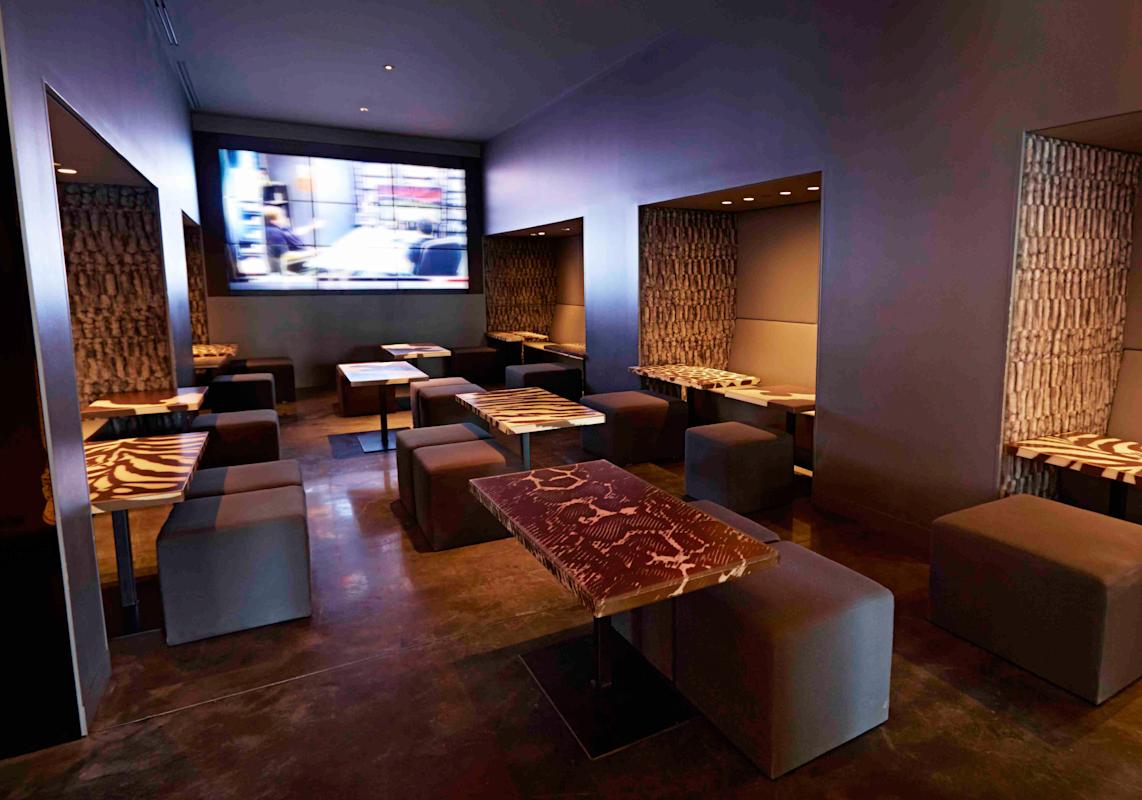 The genial and stylish Walt "Clyde" Frazier is a New York Knicks legend and sports commentator who professes to have simple, healthy tastes when it comes to food. Luckily, he's not in charge of the menu at his eponymous restaurant, opened in conjunction with Michael Weinstein of Ark Restaurants. The lauded David Waltuck (Chanterelle) had fun coming up with dishes that tweak sports-bar favorites, such as sweet-and-spicy chicken wings, curried onion fritters and thin-crust gourmet pizzas. And, of course, there's a burger, here served with caramelized onions, applewood smoked bacon and cheddar. Fancier items include top-notch steaks and blackened Scottish salmon with vanilla bourbon butter. Armando Cortes, formerly of The Grill Room, executes the menu. The 10,000-square-foot space includes loads of TV screens, a sunken bar and lounge, a small basketball court and a whimsical installation of Frazier's flamboyant suits floating overhead.