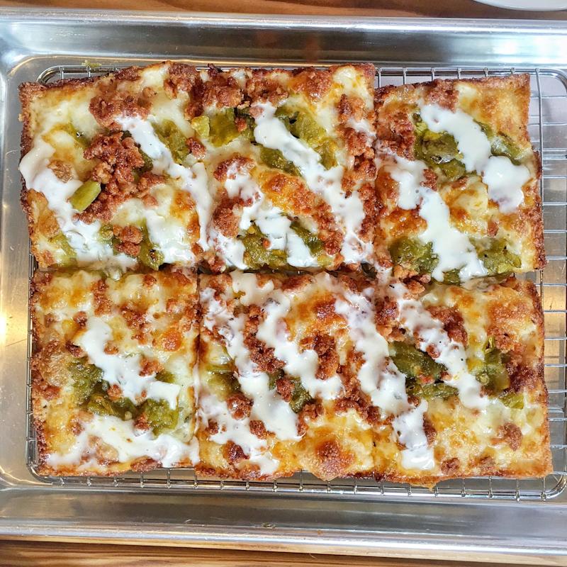 Reservations are hard to come by at this pizzeria and waits can get long, so time your visit wisely (hint: lunchtime or as soon as it opens). Each metal tray holds six square, fat slices whose golden, crunchy crust is produced via a convection oven fed by a conveyor belt. While this might sound peculiar to thin-crust, wood-fired pizza lovers, owners Emily and Matt Hyland know what they’re doing—having already mastered that genre at their first pizzeria, Emily, in Clinton Hill. The pies here are filling and zesty, the toppings bountiful (mozzarella, pepperoni, mushrooms, chiles and so forth). Also indulgent is the double-patty, cheesy Le Big Matt burger slathered with spicy sambal aioli, but it’s only available at lunch and on Friday and Saturday nights in the downstairs bar. There’s also a sizable list of whiskeys, beers and wines plus cocktails on tap.