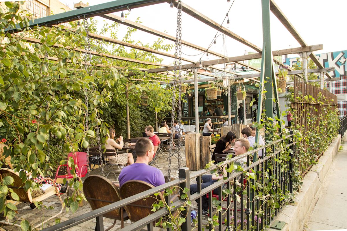 Forrest Point feels as casual as a backyard party—its outdoor courtyard is furnished with lawn chairs, heavy wooden tables, hanging plants and birdcage light fixtures. This oasis, in the middle of industrial Bushwick, is an all-day and late-night hangout for coffee, eclectic fare (fish tacos, browned waffle fries, quinoa salad, grilled eggplant sandwich), cocktails and rich desserts like ice cream sandwiches with sea salt caramel gelato. There’s a sheltered patio in front, so there’s no need to stay home if it rains. At brunch, the prix-fixe menu includes options like chilaquiles and smoked salmon Benedict, and comes with coffee and a drink.