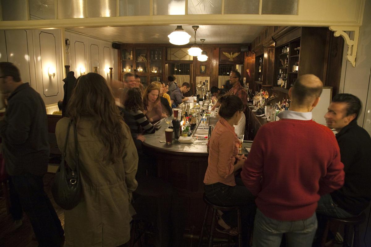 Tree-lined Cobble Hill, with its pretty brownstones, is certainly not lacking in charm. Nor is Henry Public, a dipped-in-amber saloon that makes you feel smart just for being there. Book-filled cabinets and portraits of high-minded men like Franklin Delano Roosevelt and Frederick Douglass call forth a desire to discuss politics and forswear lowest-common-denominator chitchat. The compact bill of fare is a throwback to when the hamburger was called a "hamburger sandwich." Old-school cocktails rule here, as does the brilliant turkey-leg sandwich.