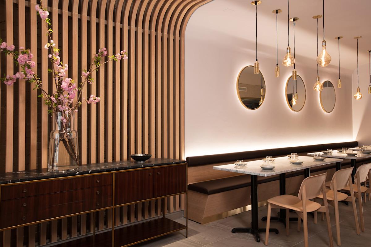 The humble name Hunan Slurp belies how chic this Chinese restaurant is, showcasing light, chewy rice noodles (mi fen) artfully topped with fish, pork or seasonal vegetables. Chao Wang, an artist and chef from the Hunan province, devised these thoughtful, precise preparations. Recommended cold dishes include sweet-and-sour spare ribs and organic smashed cucumber salad with garlic vinaigrette. The restaurant is appointed with communal tables and a graceful blond wood design.
