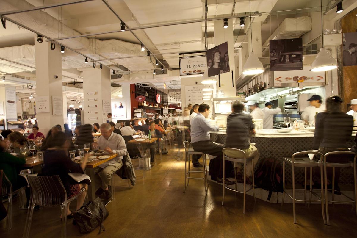 For fish lovers, chef Dave Pasternack presents creative and traditional takes on Italian seafood at Eataly's fish counter, Il Pesce. Offered daily are a whole fish "al forno," the chef’s choice roasted to perfection, and a whole fish "alla piastra," expertly pan seared market fish. Il Pesce offers daily selections of oysters, and fresh crudo offerings often seasoned with extra virgin olive oil and sea salt. Counter and table seating are available.