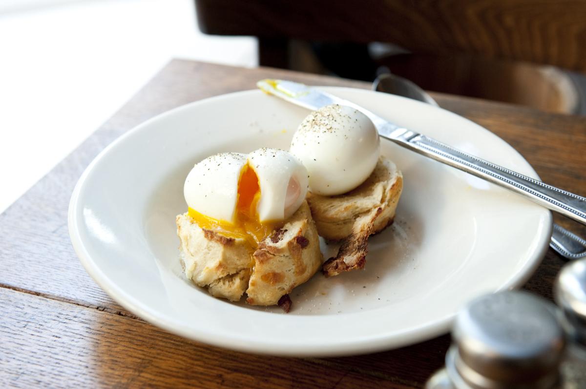 poached eggs on a biscuit at Iris Cafe in Brooklyn Heights