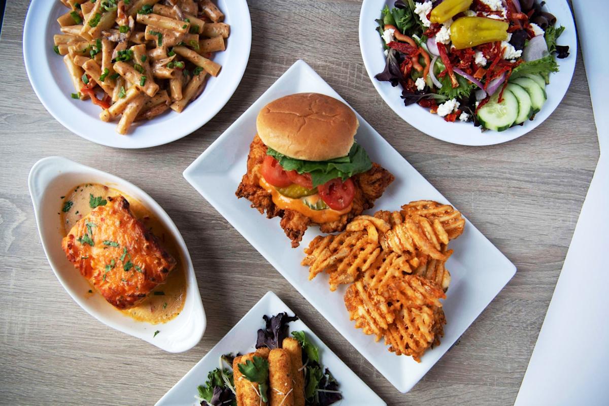 The name is a pun (think the Roman numeral "four" and its homophone "for"), but this place is serious in wanting to keep you well-fed while you're watching some kind of sporting event. Options include fried chicken sandwiches, rasta pasta and much more.
