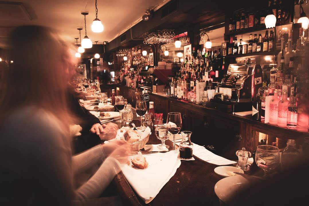 Joe Allen is the quintessential theater hangout, buzzing with producers, actors and sundry fans of the stage. This long-running show (open since 1965) celebrates flops, the brick walls showcasing posters of stinkers that didn't last much more than a night, like the notorious Moose Murders. Pull up to the bar for an expert martini that's partly poured in a glass, the rest filling a small carafe on ice so it stays nice and cold. Lunch, pre-theater or post-theater are all good times to come for uncomplicated American fare, such as sandwiches, salads, meatloaf with mashed potatoes and grilled New York strip steak in a red wine reduction