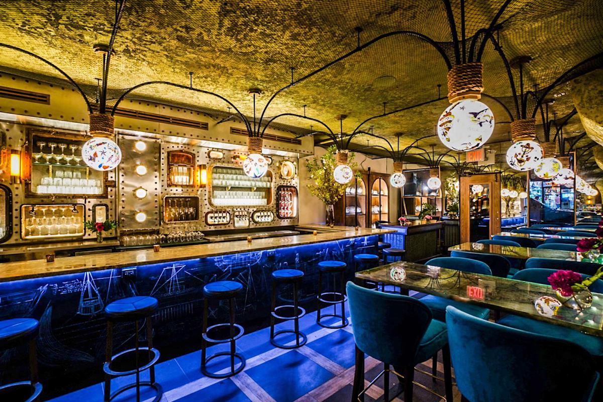 The over-the-top design of Lamia’s Fish Market makes it feel like part sea grotto, part submarine and part yacht. For solo diners or casual dates, the raw bar is the place to be for fresh-shucked oysters and ceviche. The multilevel East Village restaurant is owned by Lamia Funti, whose Le Souk once occupied this space. Ambitious and creative (check out the globe lights with tattoo-like artwork), it’s geared for nights on the town.