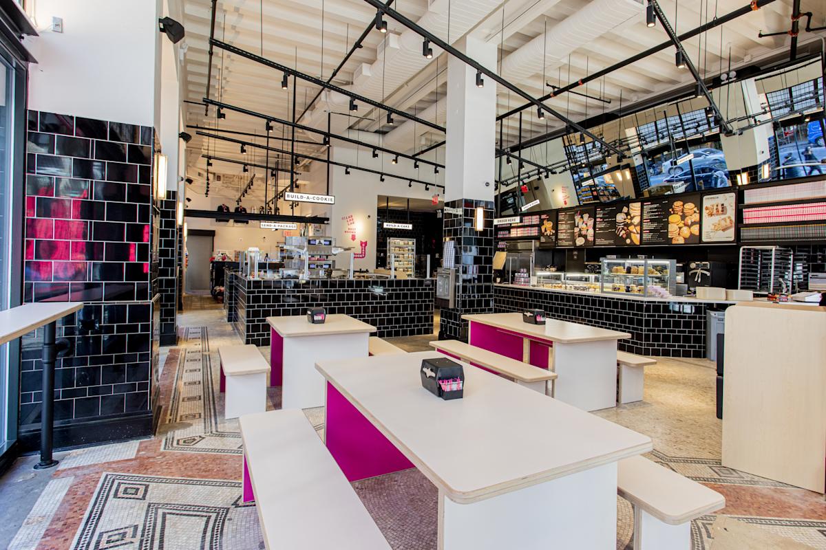 The Milk Bar NYC Flagship is an outpost of the quirky American-style bakery founded by James Beard award-winning chef Christina Tosi—a choose-your-own-adventure destination designed to feed your creativity and your sweet tooth alike. Located at the Ace Hotel New York, this two-level store is Milk Bar’s largest to date. Whether you’re customizing your own Milk Bar treat, sampling baked goods straight from the R&D test kitchen, or sending a package to a loved one, the NYC Flagship offers countless ways to make a mess, make a little magic and make someone’s day.