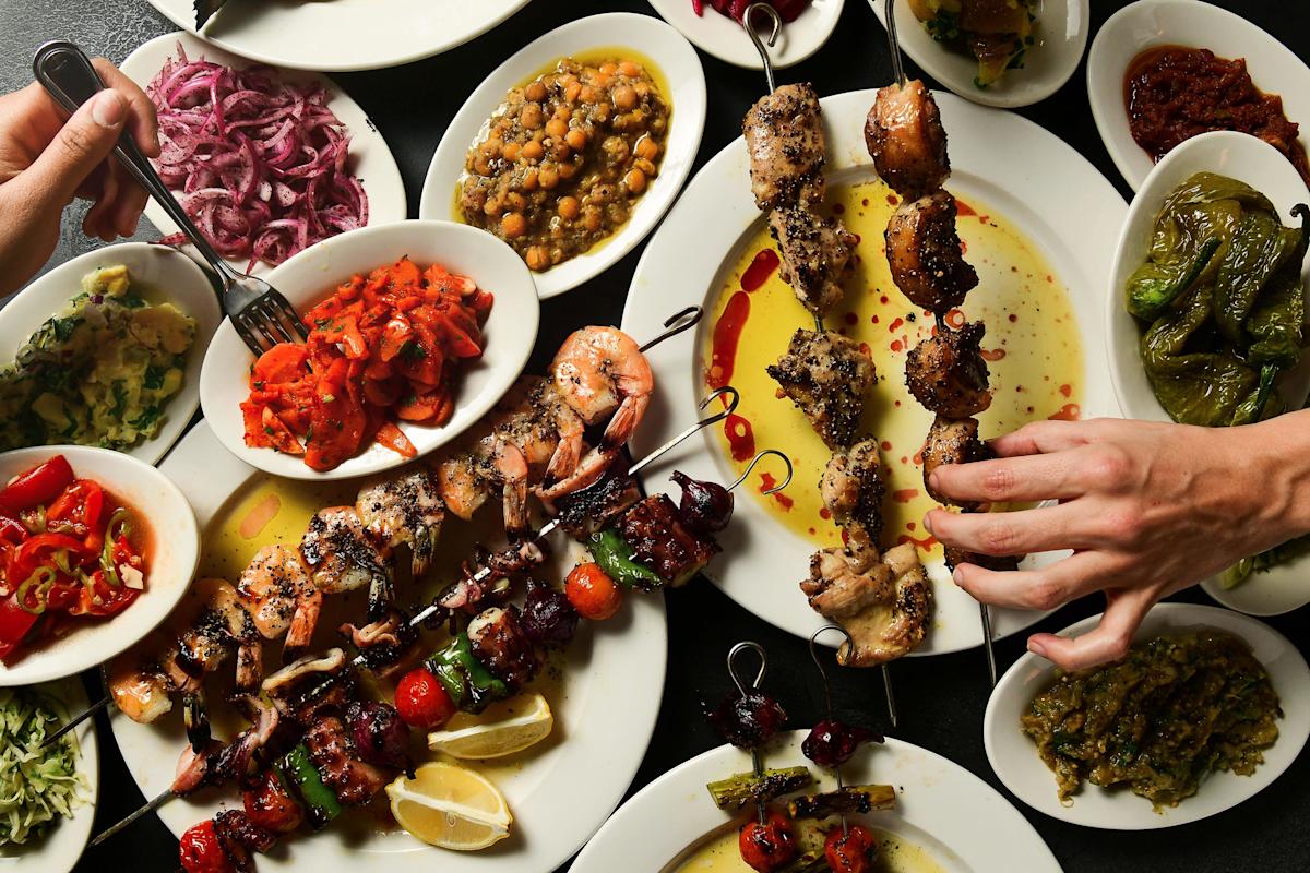 Located next to his Miznon location in Hudson Yards, Naked Tomato is chef Eyal Shani's new Mediterranean restaurant with an Israeli skewer concept, serving chicken, beef and lamb skewers, ideal for sharing. Every meal starts with 10-15 small plates that change with the seasons, like tahini, golden eggplant steak, matbucha, roasted bell peppers, tomato foam with zchug, octopus salad, spicy carrots and freekeh.
