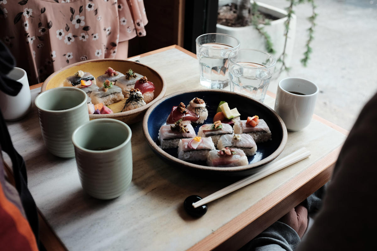Okozushi serves Kyoto-style sushi, meaning most of the fish is cured and pickled, and there’s no dipping in soy sauce. Owner Yuji Haraguchi sources the fish locally and is also behind nearby spots Okonomi and Osakana. Although the restaurant seats just nine and doesn’t take reservations, it’s worth taking your chances. Jewellike sushi and sashimi are artfully plated and set priced at $25, $35 and $45, depending on your budget and hunger level.