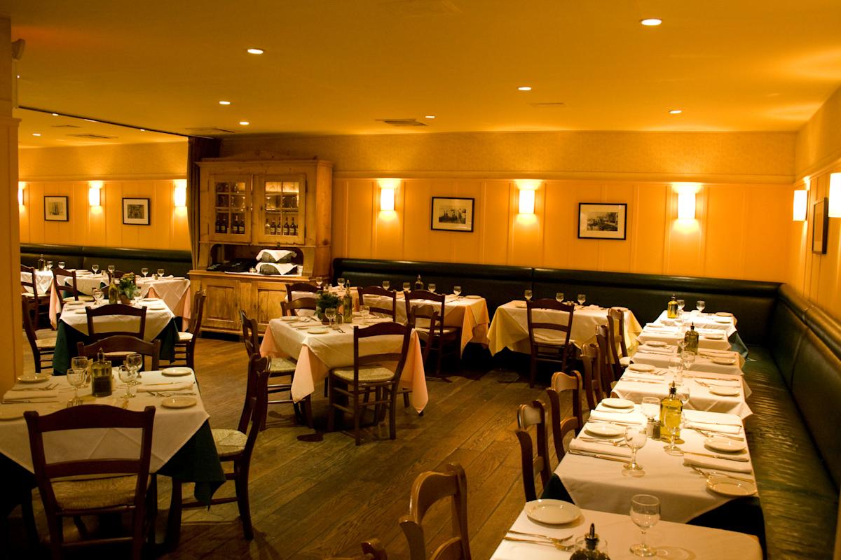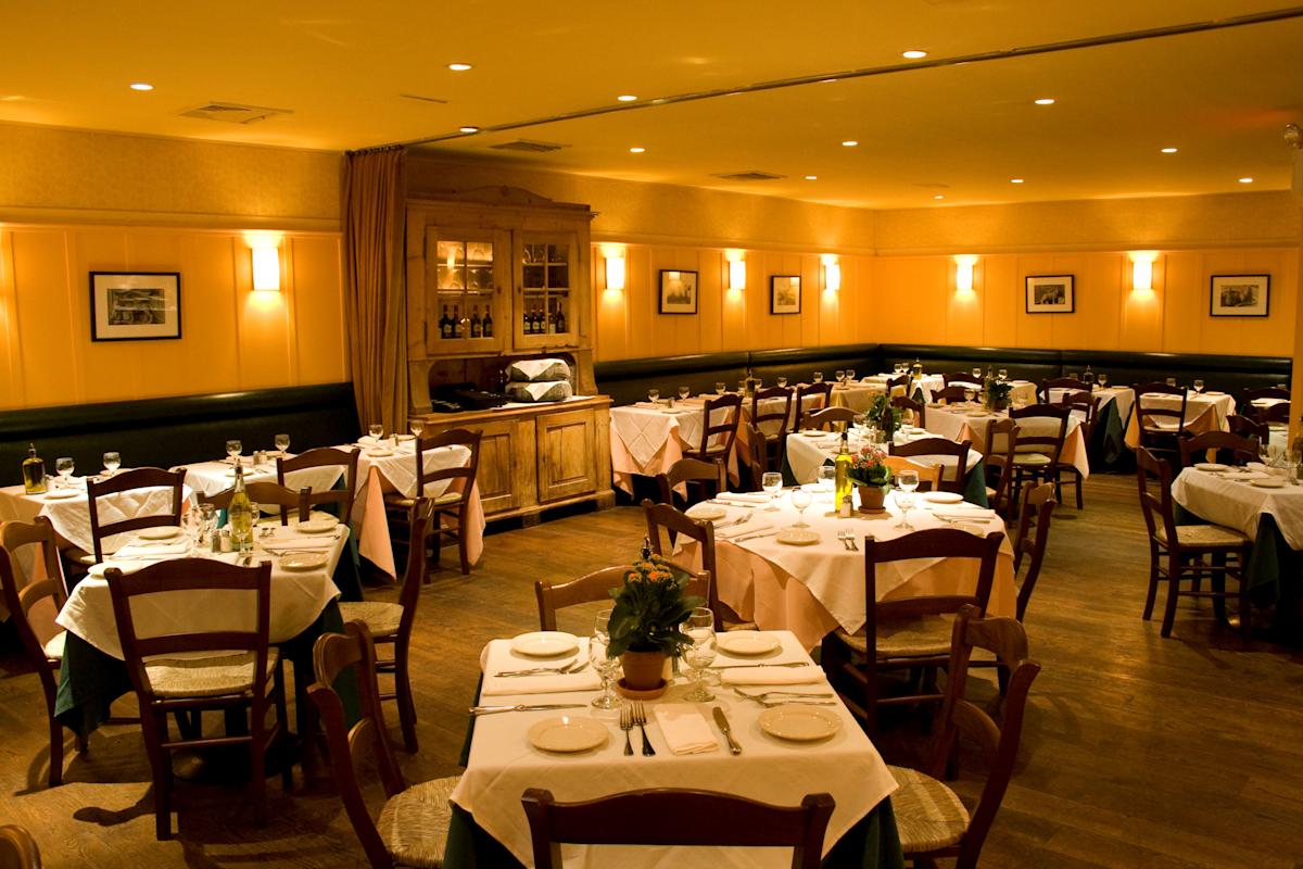 A white-tablecloth find near Grand Central Terminal, Osteria Laguna turns on the Northern Italian charm with soaring ceilings painted in Venetian yellow, sculpted iron chandeliers and rustic wooden chairs. Most dishes begin with tomato- and mozzarella-based recipes typical of trattorias, with an emphasis on traditional Venetian ingredients. Grilled fish, lamb, veal and beef are available, and home-style pasta dishes are made with semolina-flour pasta. Risotti come in daring combinations, and pizzas focus on fresh ingredients.