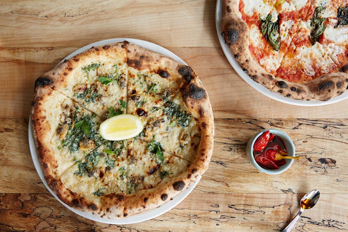 Anchored on the corner of Mulberry and Kenmare Streets in Manhattan's Little Italy, Pasquale Jones features wood-fired food, Neo-NY style pizza, and an extraordinary wine program. Part of Delicious Hospitality Group, Pasquale Jones first opened in 2016 and became an instant success with its signature clam pie and sophisticated wine list. In 2022, the restaurant expanded with a subterranean private dining room accommodating up to 60 people.