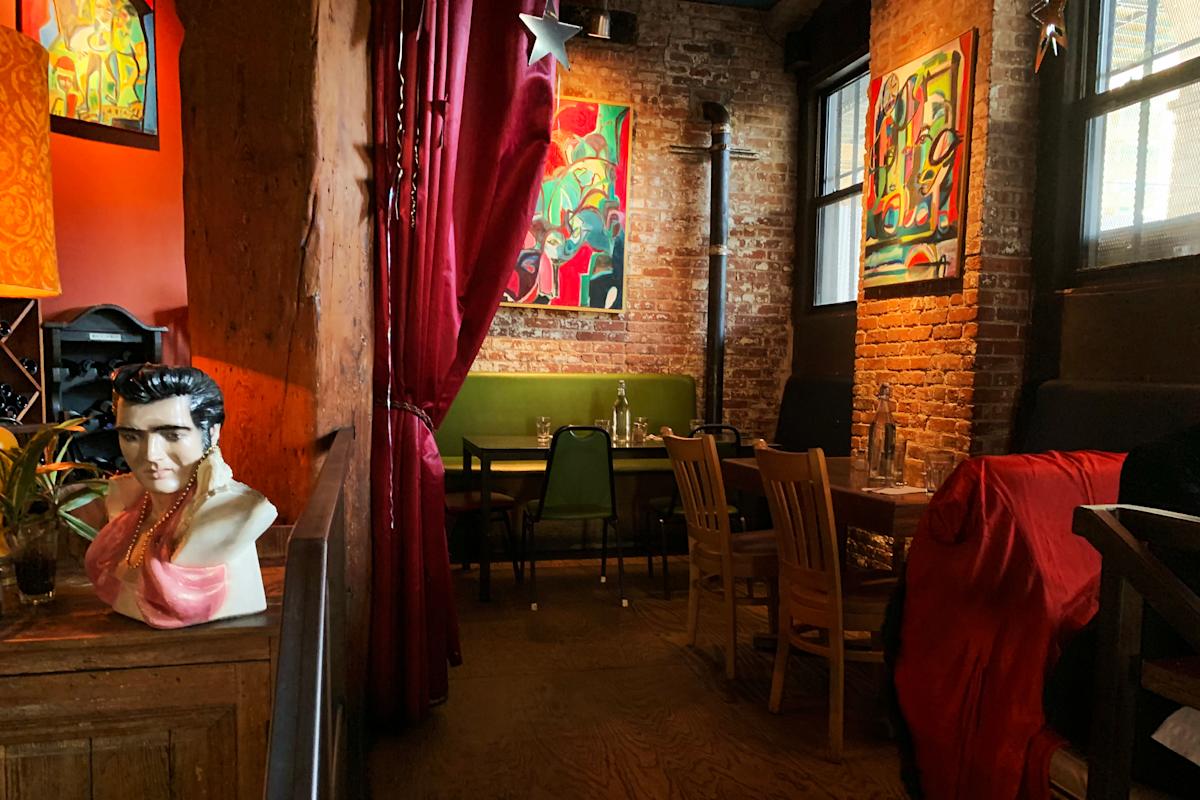 Opened in 1998, Dumbo’s Superfine restaurant operates as a center of art, community and hospitality. Artists Tanya Rynd, Caralee Sparry and Laura Taylor run the space, known for offering homey seasonal fare, hosting musicians and rotating works of art on a gallery wall.