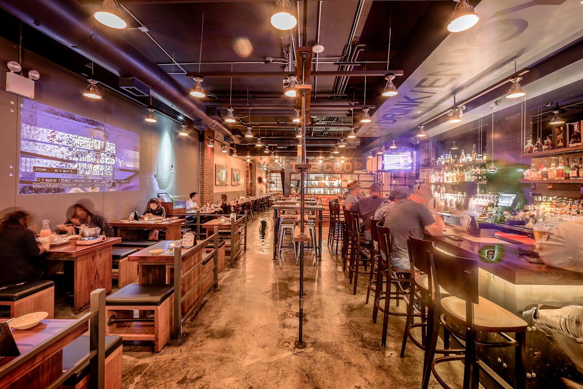 Korean fried chicken and beer make up the main event at The Coop, but this packed, modern hangout has a whole lot more going for it. Once you’ve wiped your fingers clean of the crunchy wings coated in soy garlic sauce (or the spicy version, carrying a fierce kick), move on to kimchi fried rice and mozzarella fondue with sweet pumpkin—a nod to South Koreans’ love of cheese. A better-than-average selection of IPAs and ales as well as whiskey, cognac and fruity cocktails make up the drink menu.